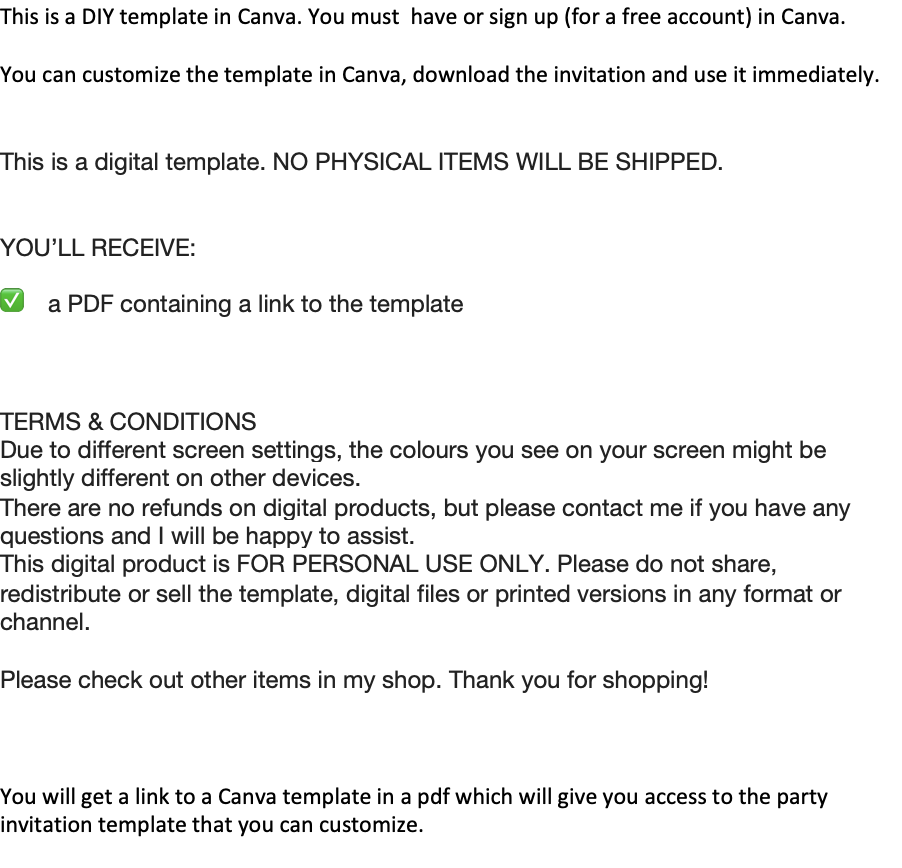 "Teddy" Customizable Party Digital Invitation Canva Template | Electronic Birthday Invite | 1080x1920px Mobile Phone Text Party Email SMSSGD$3.99SGD$3.99https://schema.org/InStocksgdSharonSharonI want this!Size724 KBLength1 pageAdd to wishlist New wishlistShareShare on XShare on Facebook Copy linkCopy product URL
